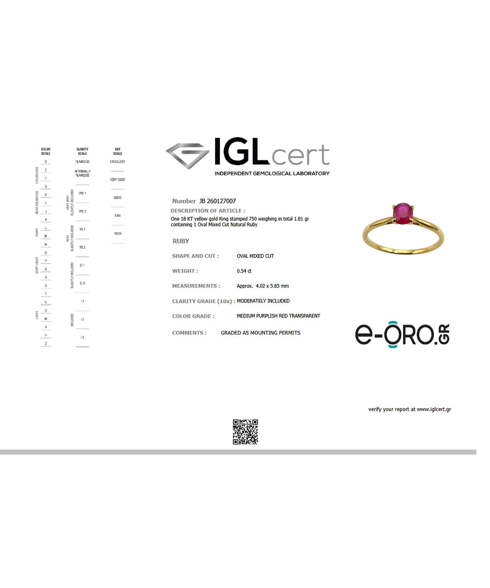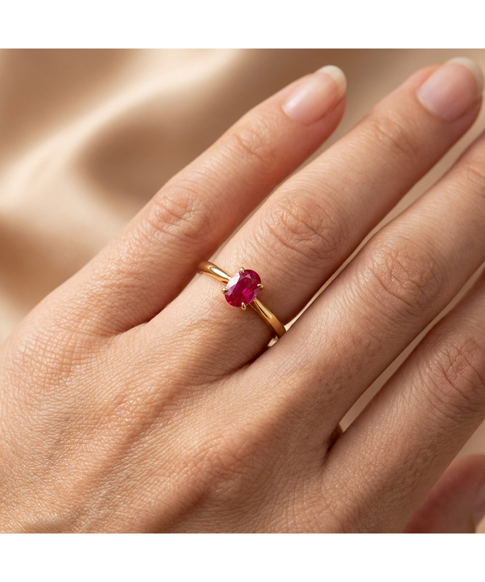 Μονόπετρο Χρυσό 18 Καράτια με οβάλ Ρουμπίνι