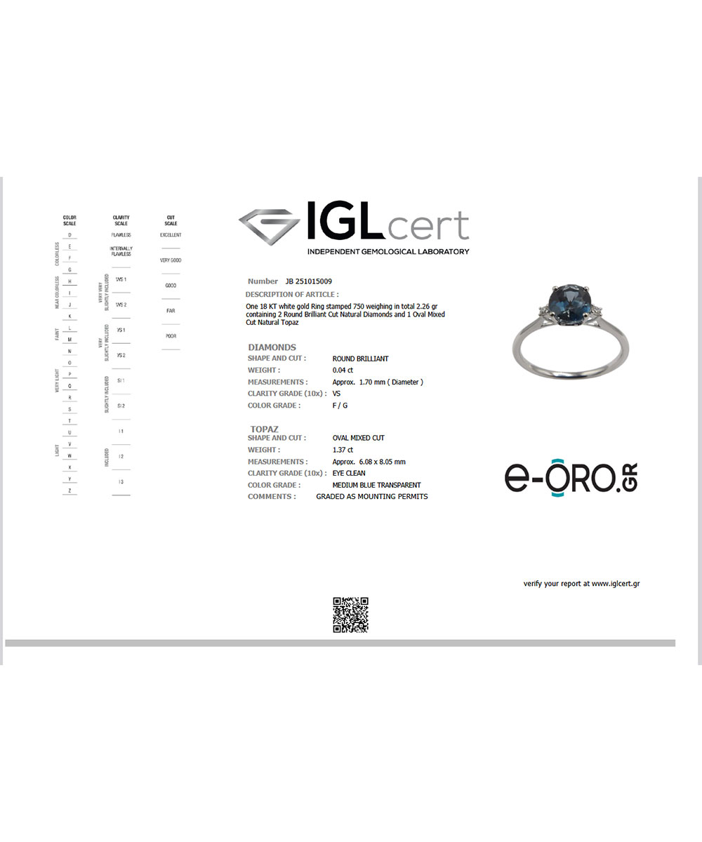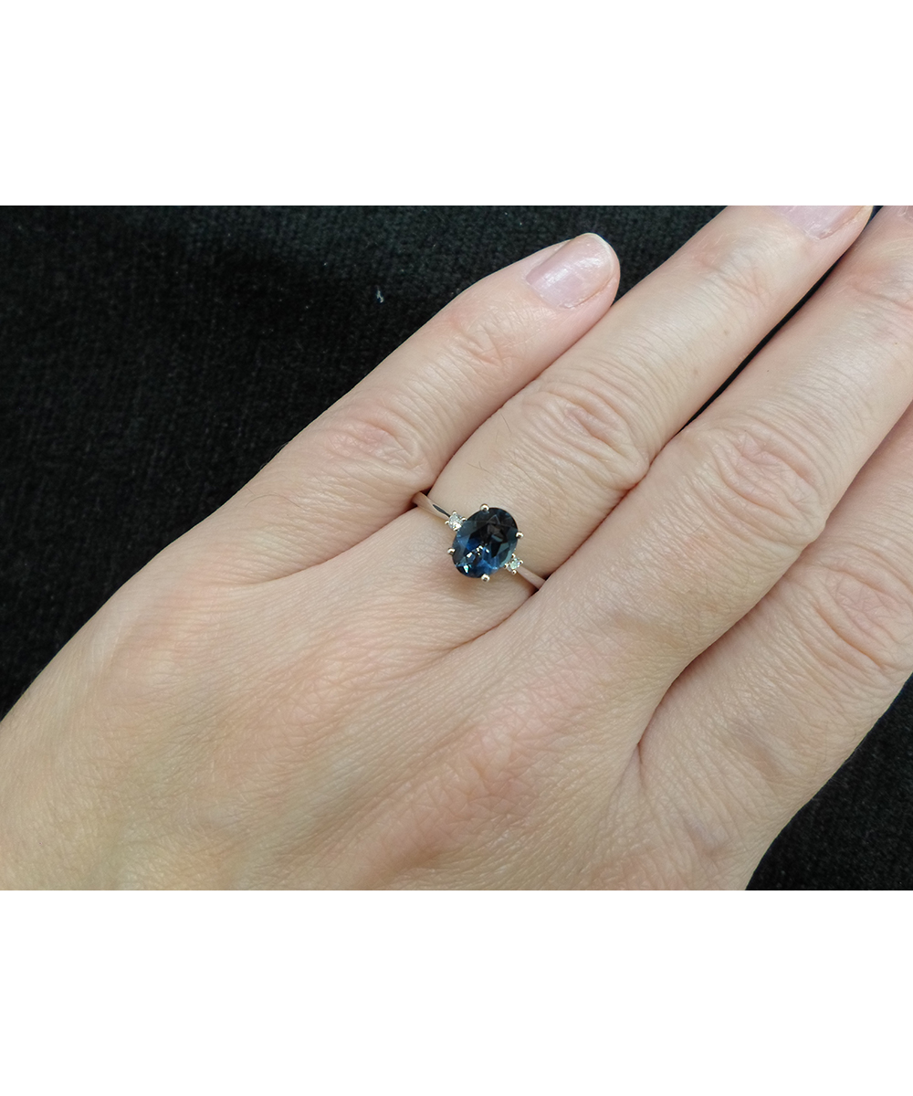 Δαχτυλίδι μονόπετρο από μονόπετρο 18 καράτια με οβάλ πέτρα Blue Topaz και διαμάντια Brilliant. Ένα πολυτελές κόσμημα με υπέροχη αντίθεση χρωμάτων και λάμψη πολυτέλειας.