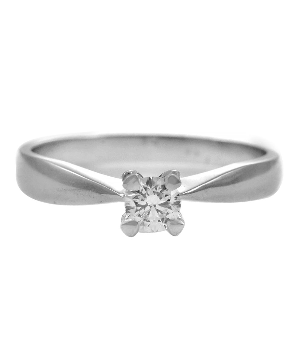Κομψό μονόπετρο δαχτυλίδι από λευκόχρυσο 18 καράτια, διακοσμημένο με φυσικό διαμάντι στρογγυλής κοπής. Ο λιτός και εκλεπτυσμένος σχεδιασμός του αναδεικνύει τη λάμψη της πέτρας, καθιστώντας το ιδανική επιλογή για πρόταση γάμου ή ως διαχρονικό κόσμημα για κάθε ιδιαίτερη στιγμή.