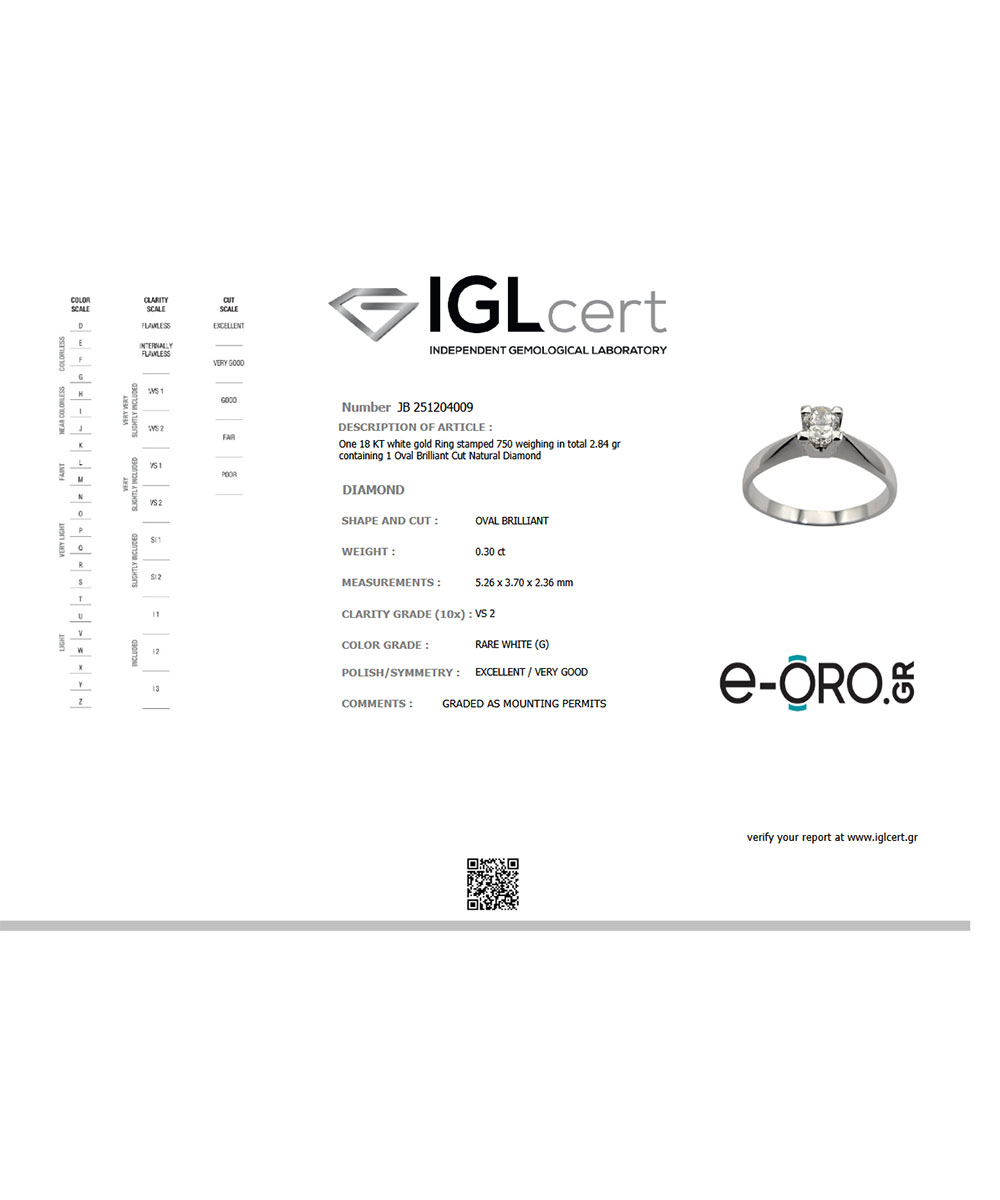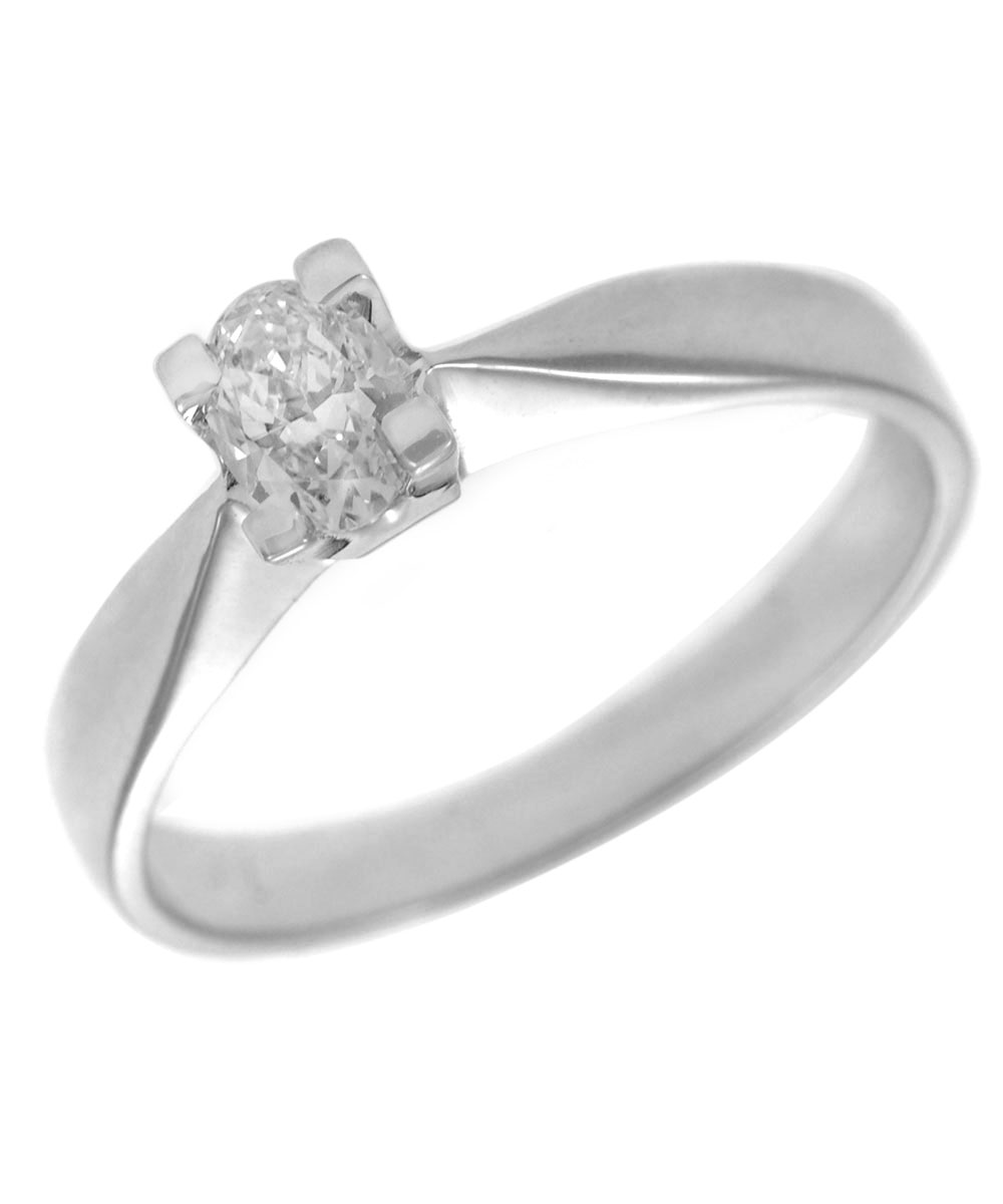 Κλασικό και φίνο μονόπετρο δαχτυλίδι από λευκόχρυσο 18 καράτια, με οβάλ διαμάντι. Ιδανική επιλογή για αρραβώνα ή επέτειο, με κομψό και διαχρονικό χαρακτήρα.