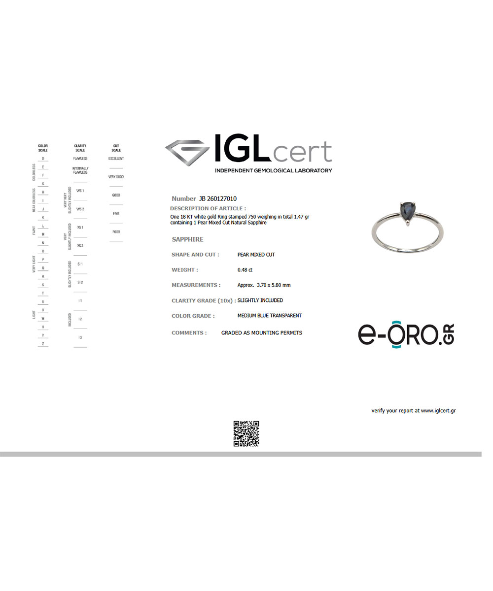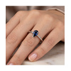 Minimal δαχτυλίδι από λευκόχρυσο 18 καράτια με φυσικό ζαφείρι σε κοπή δάκρυ. Το βαθύ μπλε χρώμα του πολύτιμου λίθου συνδυάζεται με τον διακριτικό σχεδιασμό, δημιουργώντας ένα κομψό και διαχρονικό κόσμημα.