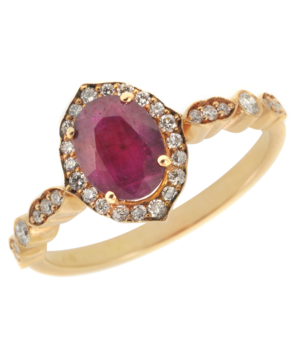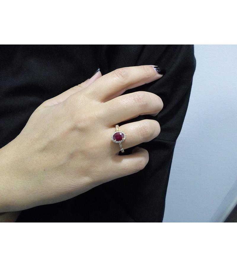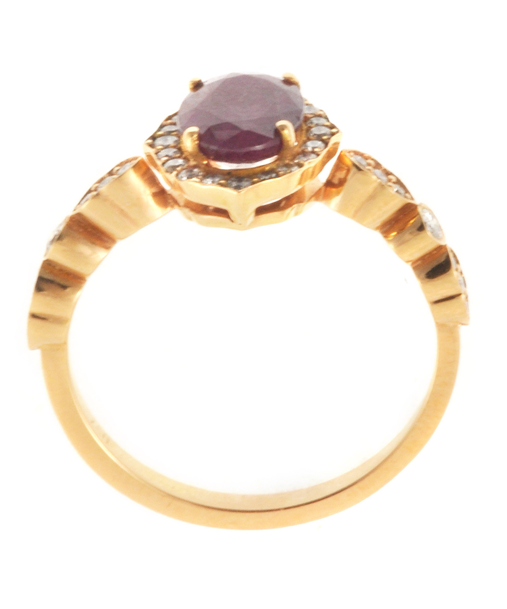 Γυναικείο Μονόπετρο Δαχτυλίδι από Ροζ Χρυσό 18 Καράτια με Διαμάντια σε Κοπή Μπριγιάν(Br) και με ορυκτή πέτρα Ρουμπίνι.