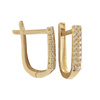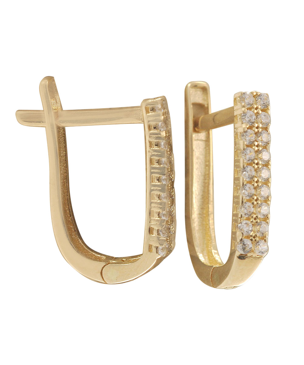 Γυναικεία σκουλαρίκια σε σχήμα μικρού κρίκου από χρυσό 14 καράτια, στολισμένα με λευκά Ζιργκόν. Διαχρονικό σχέδιο για καθημερινό στυλ.