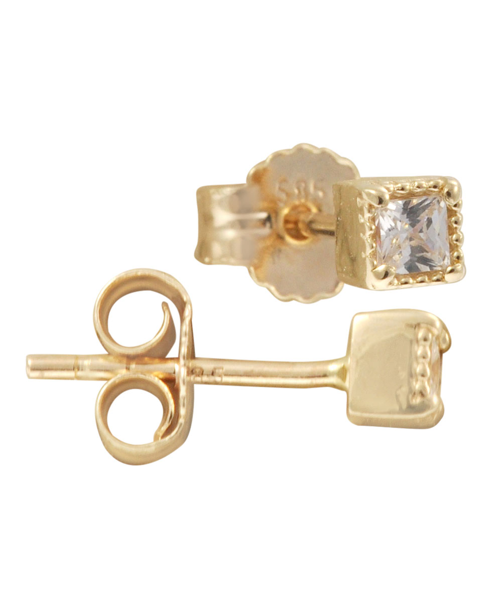 Κλασικά και κομψά σκουλαρίκια από χρυσό 14 καράτια με τετράγωνα λευκά Ζιργκόν. Η minimal αισθητική τους τα καθιστά ιδανικά για καθημερινή χρήση αλλά και για πιο επίσημες περιστάσεις.