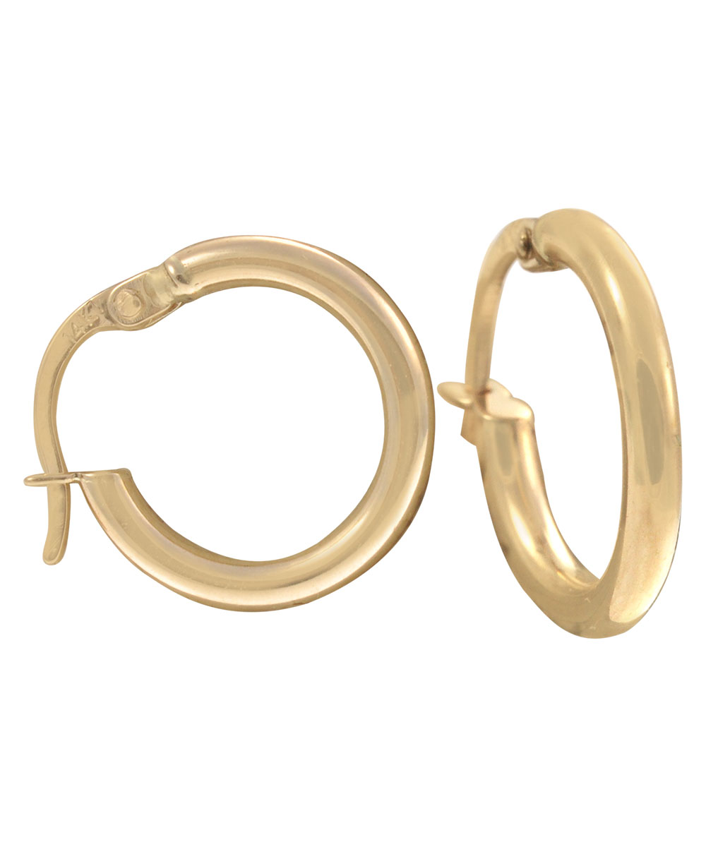 Κλασικοί στρογγυλοί κρίκοι από χρυσό 14 καράτια με λεία επιφάνεια. Διαχρονικό σχέδιο που ταιριάζει σε κάθε γυναίκα. Ελαφριά και άνετα, ιδανικά για καθημερινή κομψότητα.