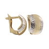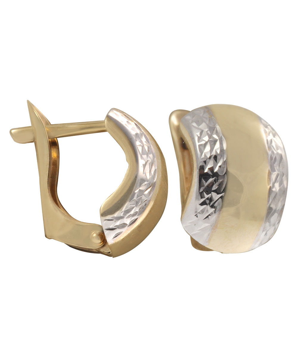 Δίχρωμα σκουλαρίκια από χρυσό 14 καράτια, συνδυάζοντας κίτρινο και λευκό χρυσό με ανάγλυφο φινίρισμα. Ιδανικά για γυναίκες που αγαπούν τον μοντέρνο σχεδιασμό και τη διακριτική λάμψη.