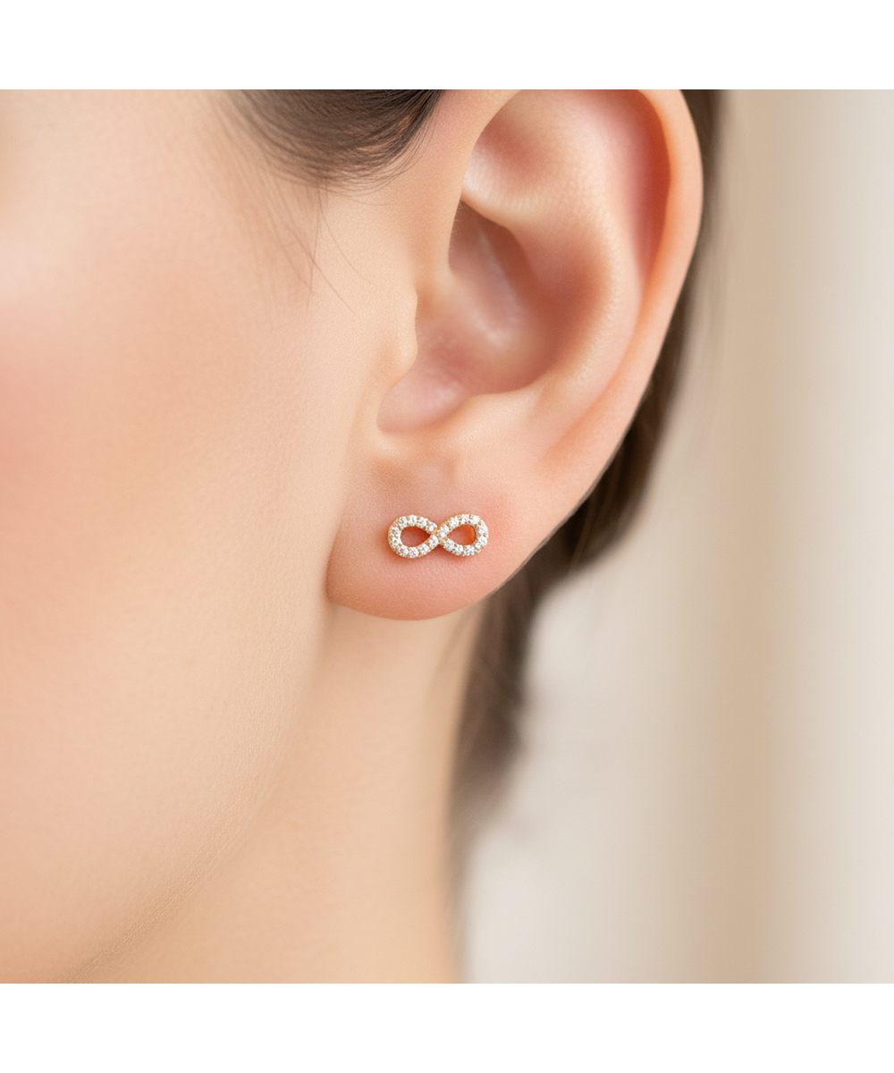 Γυναικεία σκουλαρίκια άπειρο χρυσά 9 καράτια με πέτρες Ζιργκόν.