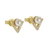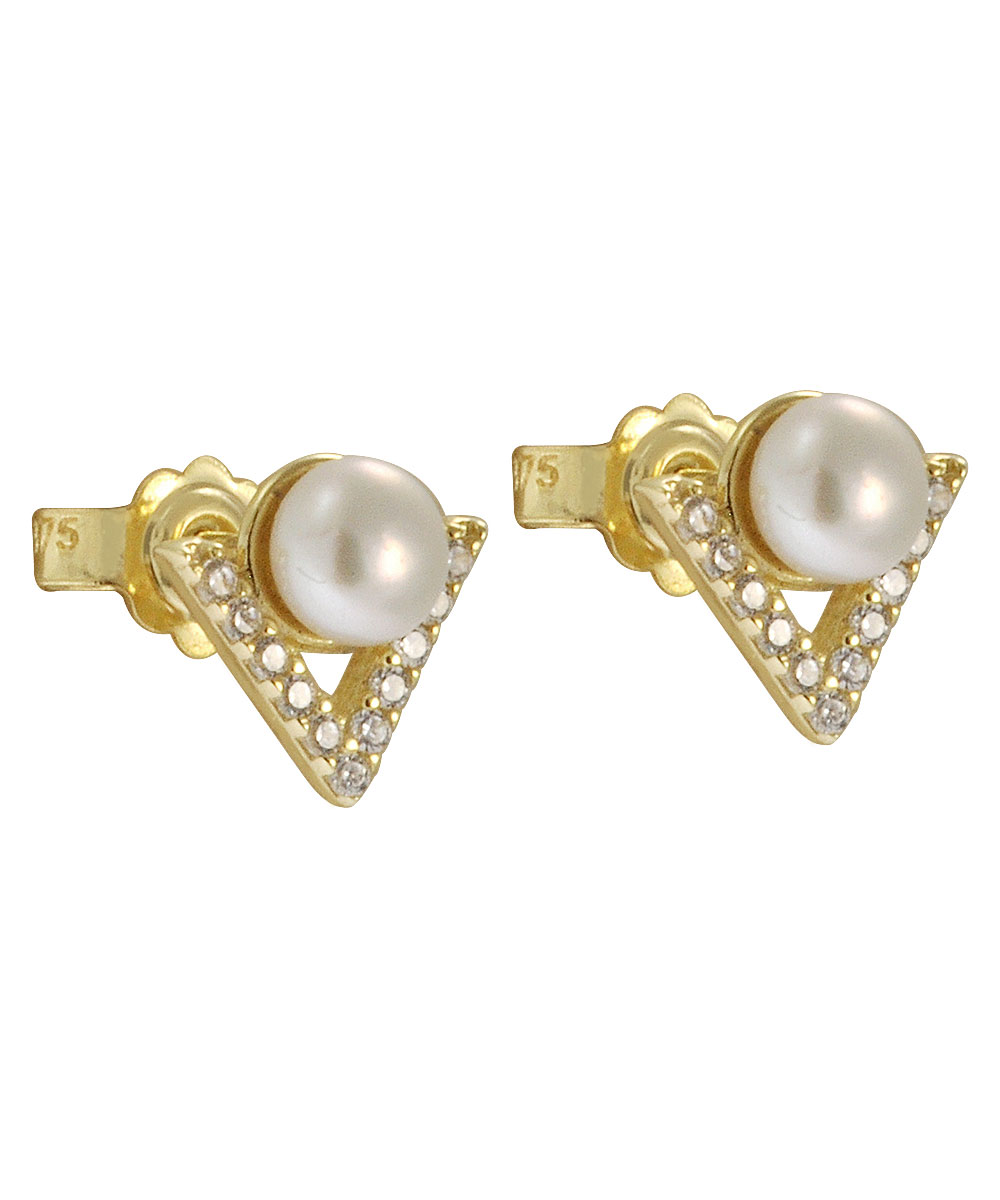 Γυναικεία σκουλαρίκια χρυσά 9 καράτια με πέτρες Ζιργκόν και με λευκά Μαργαριτάρια.