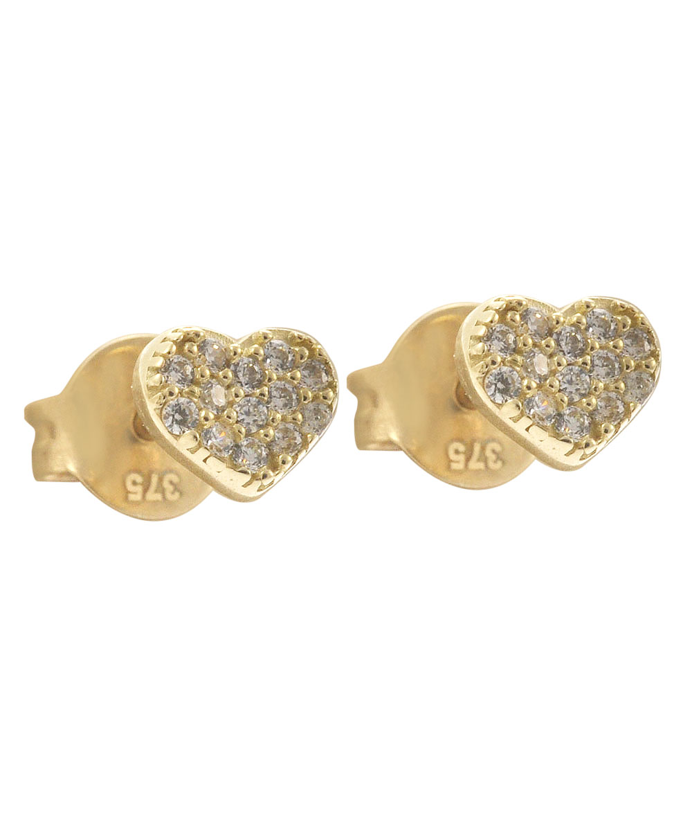 Κομψά χρυσά σκουλαρίκια με σχήμα καρδιάς από χρυσό 9 καράτια, διακοσμημένα με λαμπερά λευκά ζιργκόν σε pavé δέσιμο. Ένα διαχρονικό σχέδιο που αποπνέει ρομαντισμό και κομψότητα, ιδανικό για καθημερινή χρήση ή ως δώρο αγάπης. Κλείωμα καρφωτό για άνετη εφαρμογή.