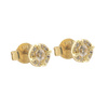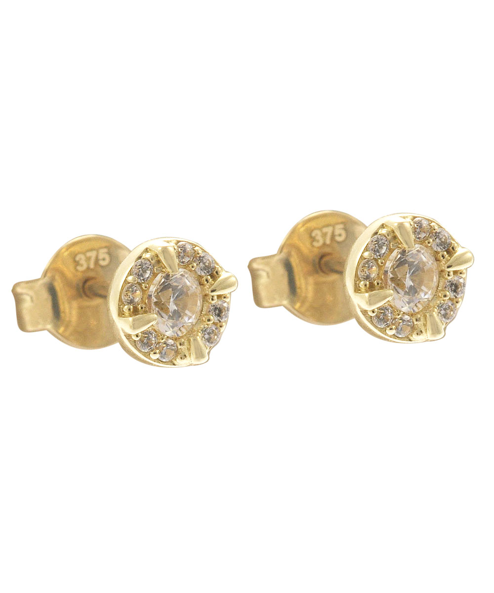 Εντυπωσιακά χρυσά σκουλαρίκια από χρυσό 9 καράτια με κεντρικό λευκό ζιργκόν και περιμετρικά από μικρότερα ζιργκόν. Κλασικό και λαμπερό σχέδιο που ταιριάζει απόλυτα σε κάθε περίσταση. Διαθέτουν καρφωτό κούμπωμα για σταθερό κράτημα.