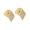 Μοντέρνα σκουλαρίκια ρόμβος από χρυσό 9 καράτια, διακοσμημένα με λευκά ζιργκόν σε λαμπερή διάταξη. Ένα κομψό γεωμετρικό σχέδιο που προσθέτει στιλ και λάμψη σε κάθε εμφάνιση. Ιδανικά για καθημερινή αλλά και βραδινή χρήση.
