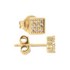 Minimal και κομψά χρυσά σκουλαρίκια τετράγωνου σχήματος από χρυσό 9 καράτια, διακοσμημένα με λευκά ζιργκόν σε pavé. Ιδανική επιλογή για όσες αγαπούν τα καθαρά, γεωμετρικά σχέδια με διακριτική λάμψη.