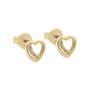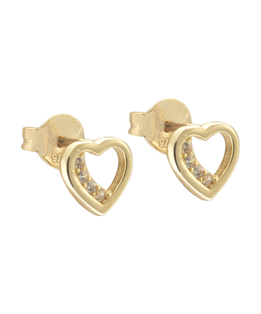 Κομψά σκουλαρίκια καρφωτά από χρυσό 9 καράτια με ανοιχτό σχέδιο καρδιάς και διακριτικά ζιργκόν. Minimal και ρομαντικά, κατάλληλα για καθημερινή χρήση αλλά και για ξεχωριστές περιστάσεις.