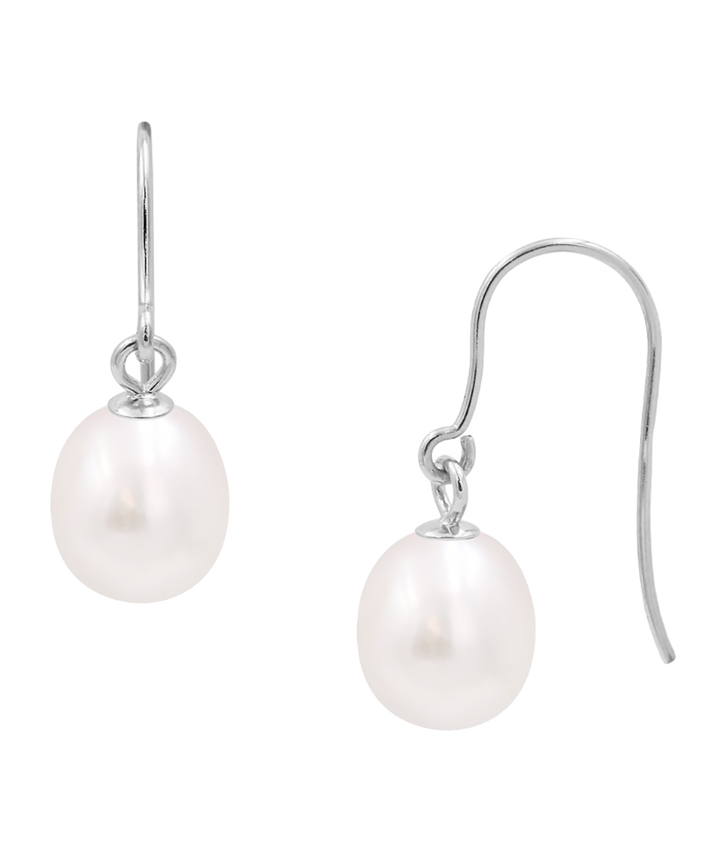 Γυναικεία Σκουλαρίκια Λευκόχρυσα 14 καράτια με λευκά μαργαριτάρια Fresh Water Pearl  σε σχήμα Drop.