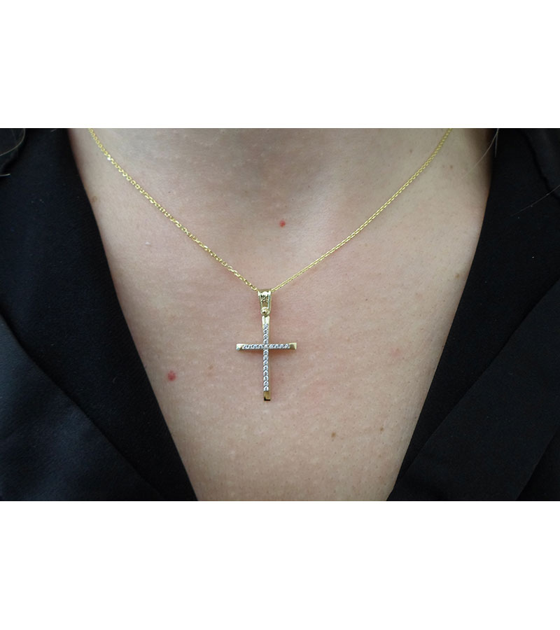 Σταυρός Χρυσός 14 καράτια με πέτρες Ζιργκόν. Συνοδεύεται από αλυσίδα χρυσή 9 καράτια.