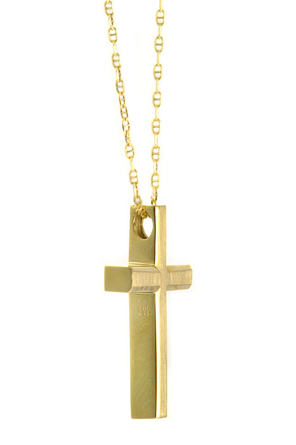 Ανδρικός Σταυρός Χρυσός 14 καράτια. Συνοδεύεται από αλυσίδα χρυσή 14 καράτια.