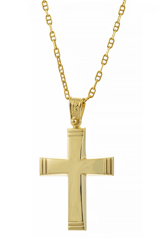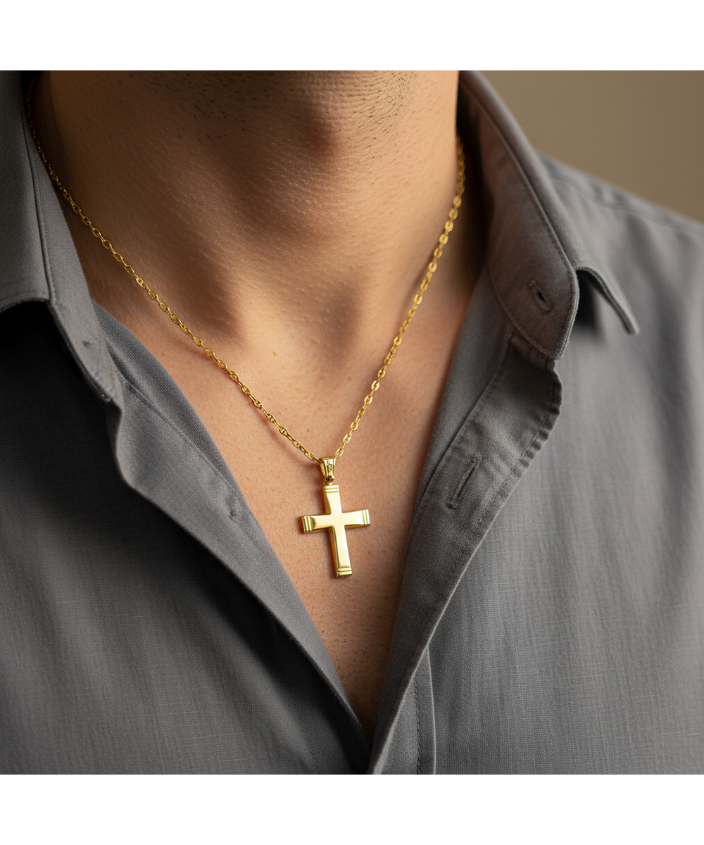 Κλασικός χρυσός σταυρός από χρυσό 14 καράτια, με γυαλιστερό φινίρισμα και κομψό, διαχρονικό σχεδιασμό. Ιδανικός για καθημερινή χρήση αλλά και ως δώρο βάπτισης ή θρησκευτικής σημασίας.
