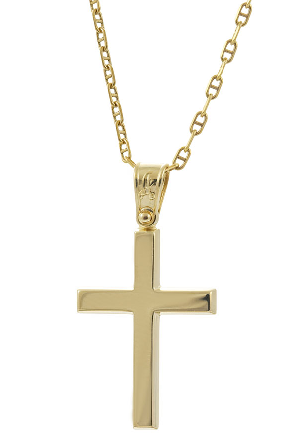 Λεπτός και κομψός σταυρός από χρυσό 14 καράτια με καθαρές γραμμές και γυαλιστερή επιφάνεια. Minimal σχεδιασμός που φοριέται εύκολα κάθε μέρα. Ιδανική επιλογή για όσους αγαπούν το διαχρονικό και διακριτικό κόσμημα.