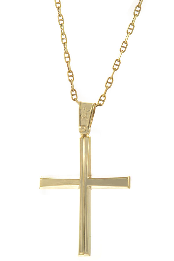 Σταυρός από χρυσό 14 καράτια με διακριτική διπλή γραμμή στο σχέδιο, που προσδίδει βάθος και κομψότητα. Κλασικός αλλά σύγχρονος, αποτελεί ιδανική επιλογή για καθημερινή χρήση ή για δώρο σε αγαπημένο πρόσωπο.
