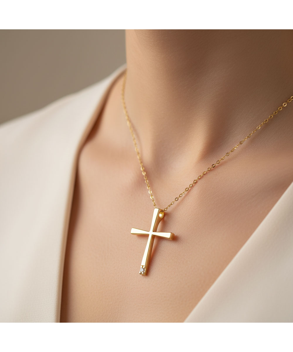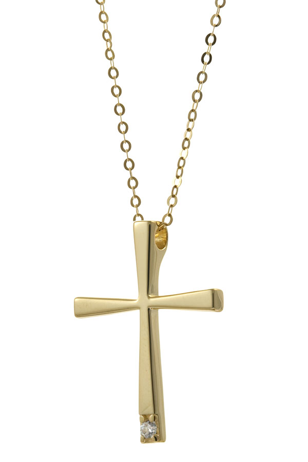 Κλασικός σταυρός από χρυσό 9 καράτια με λείο φινίρισμα και minimal σχεδιασμό. Η απλότητα του τον καθιστά διαχρονική επιλογή, ιδανική για καθημερινή χρήση και συνδυασμούς με άλλα κοσμήματα.
