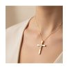 Κομψός σταυρός από χρυσό 9 καράτια με διακριτικά ζιργκόν τοποθετημένα στο κέντρο του σχεδίου. Ο minimal χαρακτήρας σε συνδυασμό με τη λάμψη των πετρών δημιουργεί ένα κομψό και ευκολοφόρετο κόσμημα.