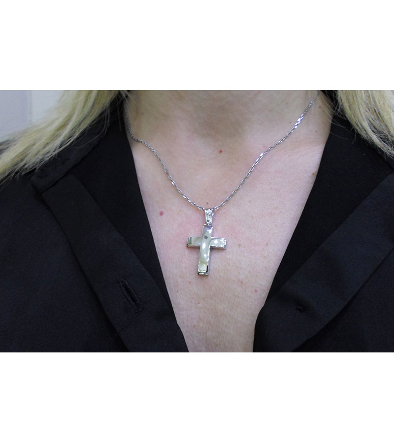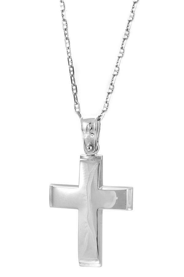 Ανδρικός Σταυρός Λευκόxρυσoς 14 καράτια. Συνοδεύεται από αλυσίδα λευκόχρυση 14 καράτια.