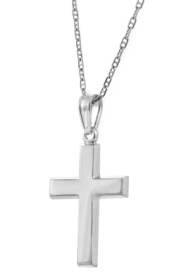 Ανδρικός σταυρός λευκόxρυσoς 14 καράτια. Συνοδεύεται από αλυσίδα λευκόχρυση 14 καράτια.