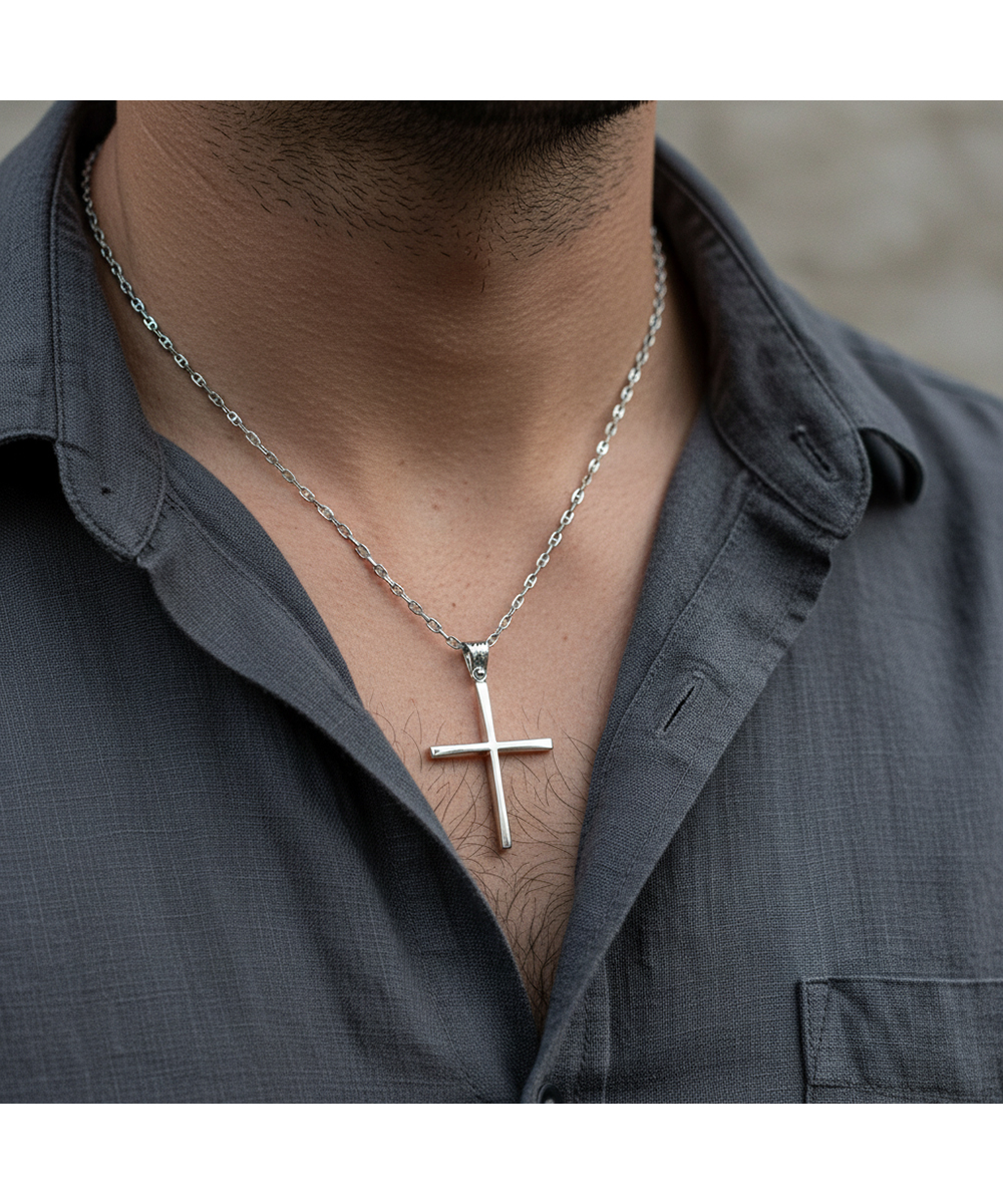 Κομψός σταυρός από λευκόxρυσo 14 καράτια, με λουστρέ φινίρισμα και καθαρές minimal γραμμές. Ένα διαχρονικό κόσμημα που φοριέται καθημερινά και συνδυάζεται εύκολα με κάθε στυλ. Ιδανική επιλογή για δώρο ή προσωπική χρήση.