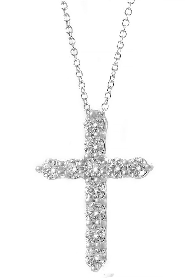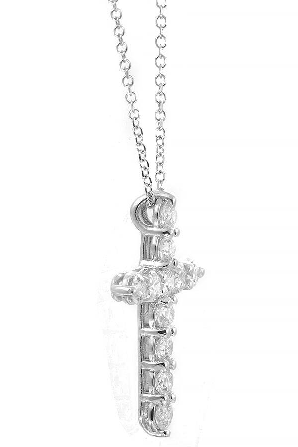 Γυναικείος σταυρός λευκόχρυσος 18 Καράτια με Διαμάντια σε Κοπή Μπριγιάν(Br). Συνοδεύεται από αλυσίδα χρυσή 18 καράτια.