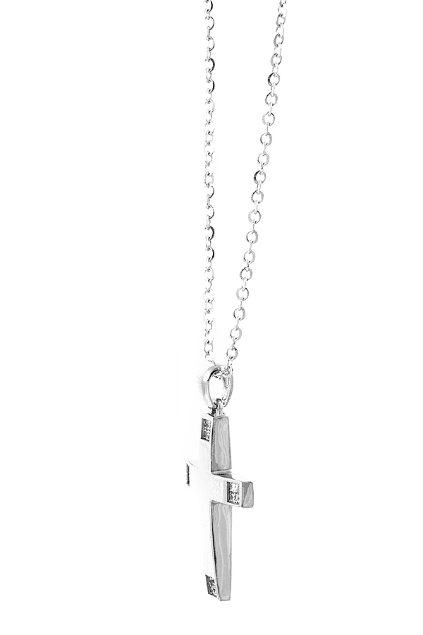 Γυναικείος Σταυρός Λευκόχρυσος 14 καράτια με πέτρες Ζιργκόν. Συνοδεύεται από αλυσίδα λευκόχρυση 14 καράτια.