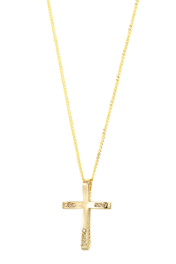Σταυρός Χρυσός 14 καράτια με πέτρες Ζιργκόν. Συνοδεύεται από αλυσίδα χρυσή 14 καράτια.