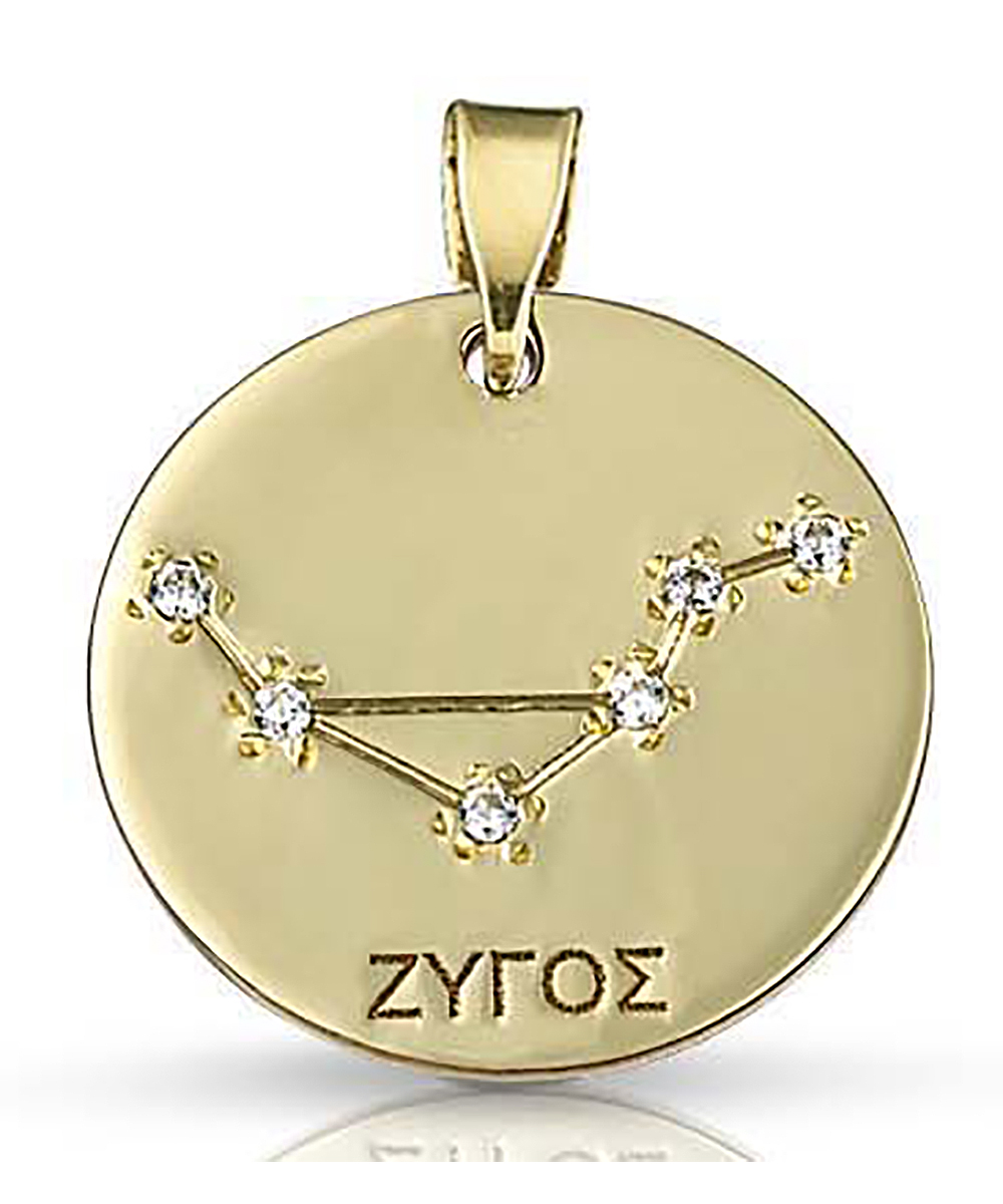 Γυναικείο Ζώδιο ''ΖΥΓΟΣ'' Χρυσό 9 Καράτια με πέτρες Ζιργκόν.