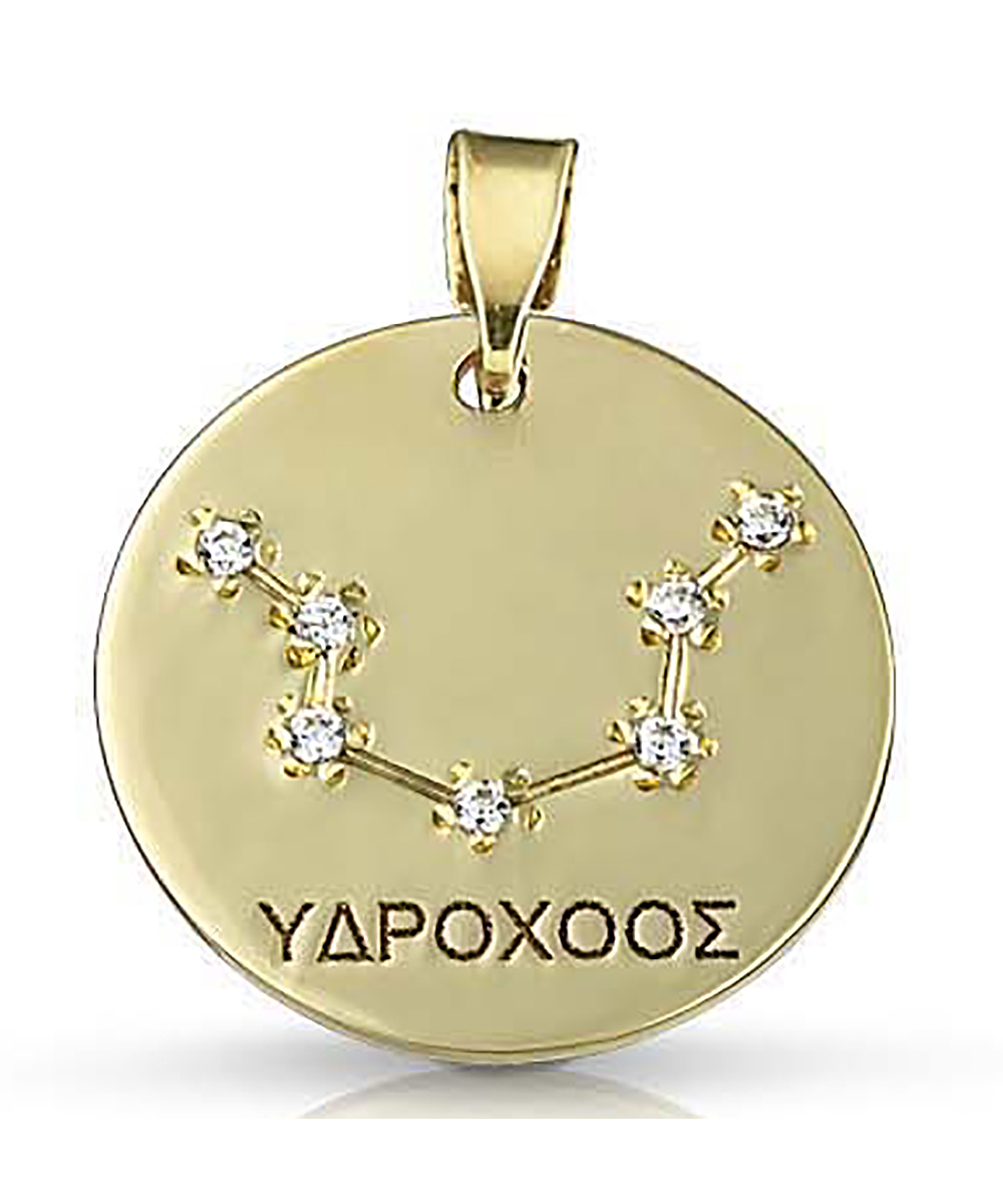 Γυναικείο Ζώδιο ''ΥΔΡΟΧΟΟΣ'' Χρυσό 9 Καράτια με πέτρες Ζιργκόν.