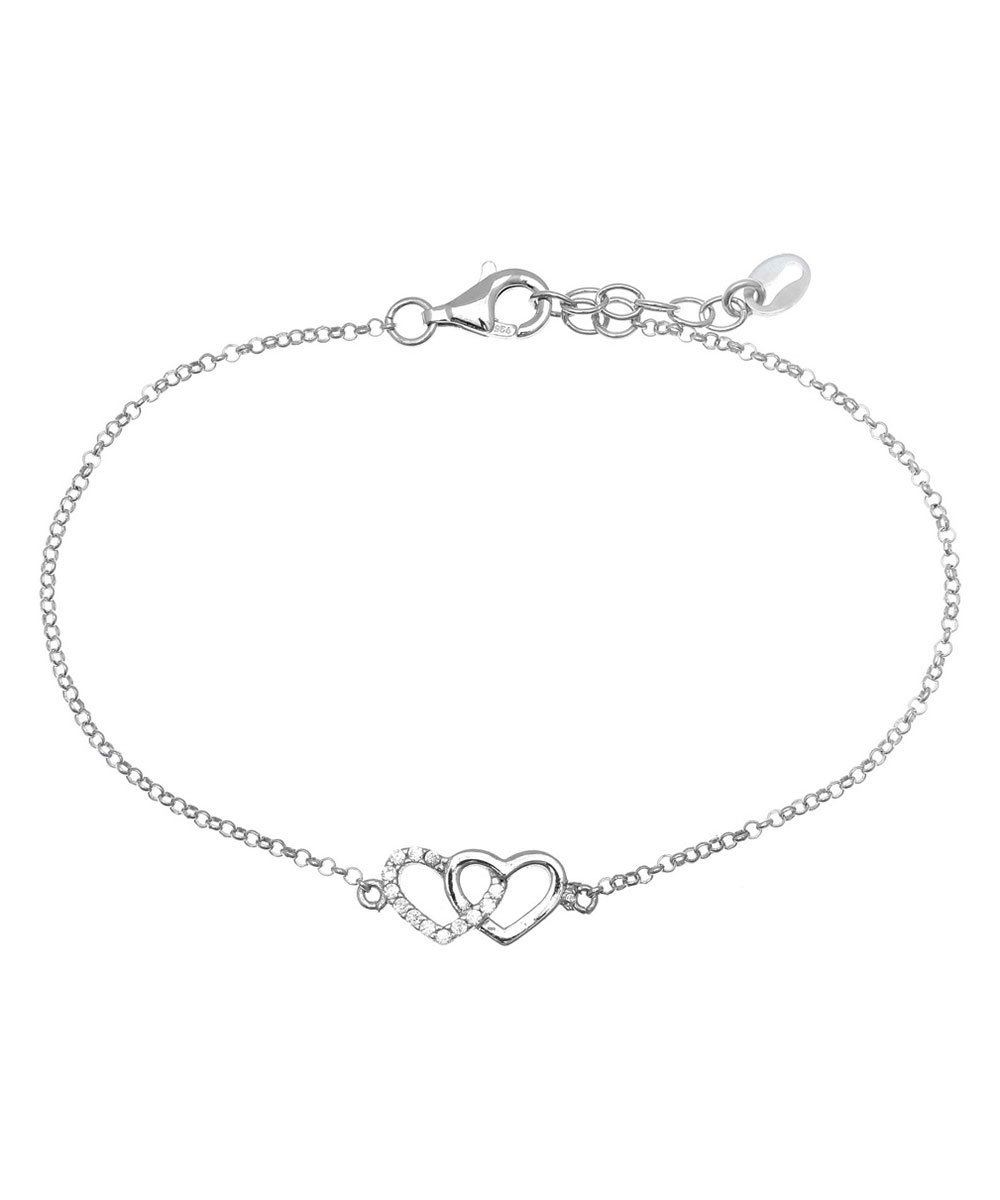 Γυναίκειο βραχιόλι καρδιά Gregio από επιπλατινωμένο ασήμι 925 με πέτρες Ζιργκόν.