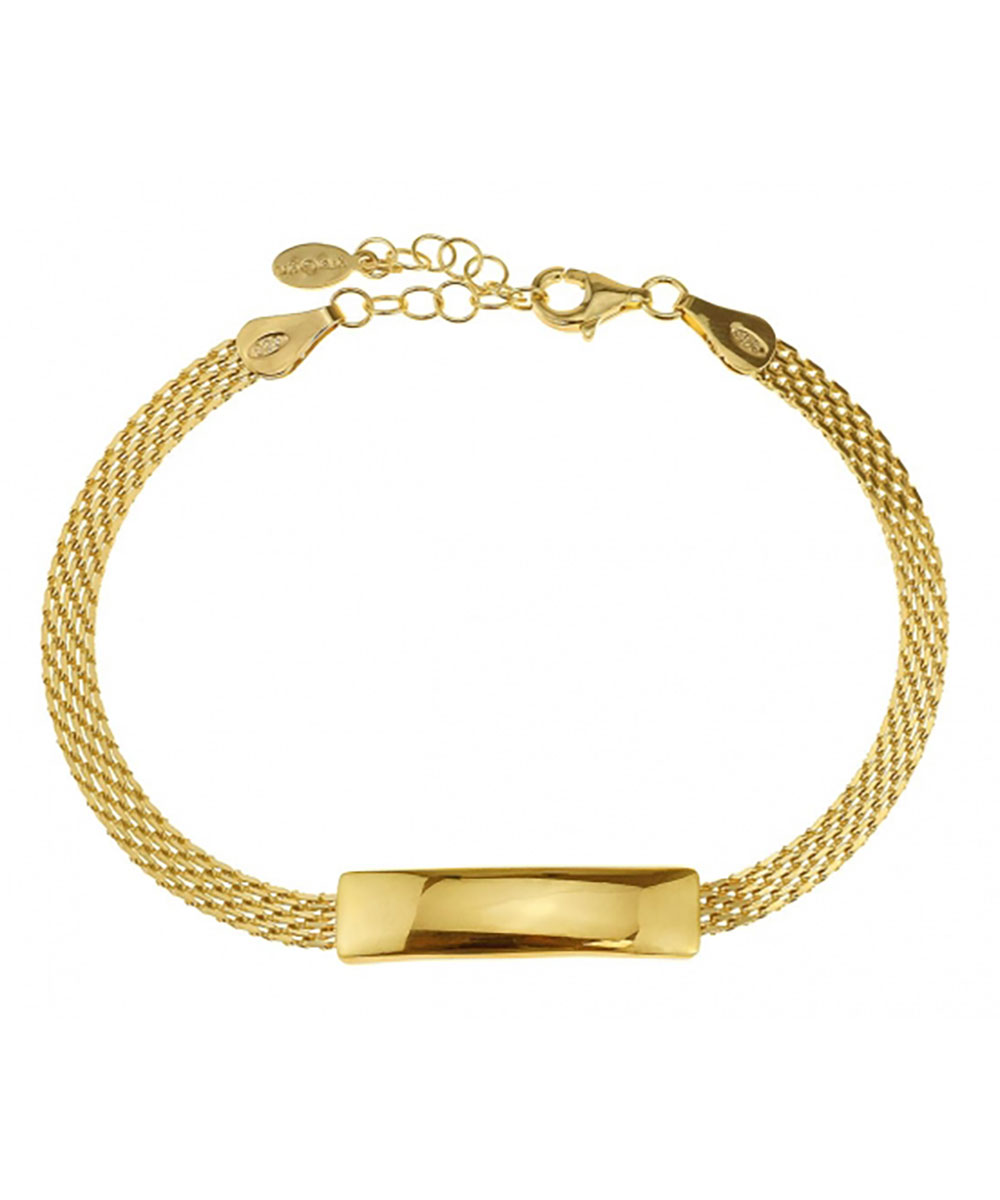 Minimal βραχιόλι από επιχρυσωμένο ασήμι 925°, με λεία κεντρική μπάρα και πλέγμα αλυσίδων. Διαχρονικό σχέδιο που φοριέται εύκολα καθημερινά και συνδυάζεται άψογα με άλλα κοσμήματα.