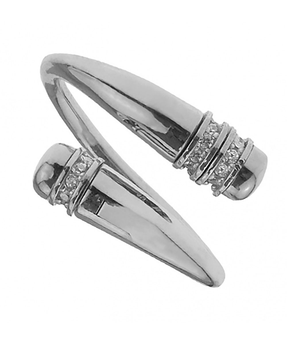 Ιδιαίτερο δαχτυλίδι από ασήμι 925° με διπλό σχεδιασμό και λευκά ζιργκόν. Ένα μοντέρνο κόσμημα που ξεχωρίζει για τη δυναμική του γραμμή και την κομψή του λάμψη.