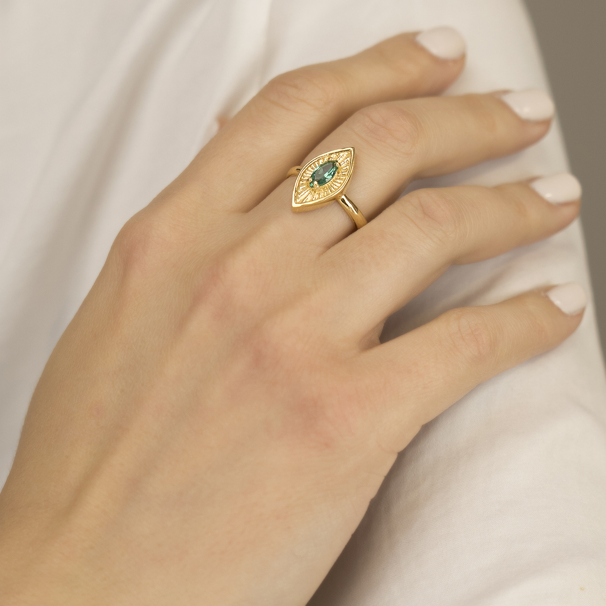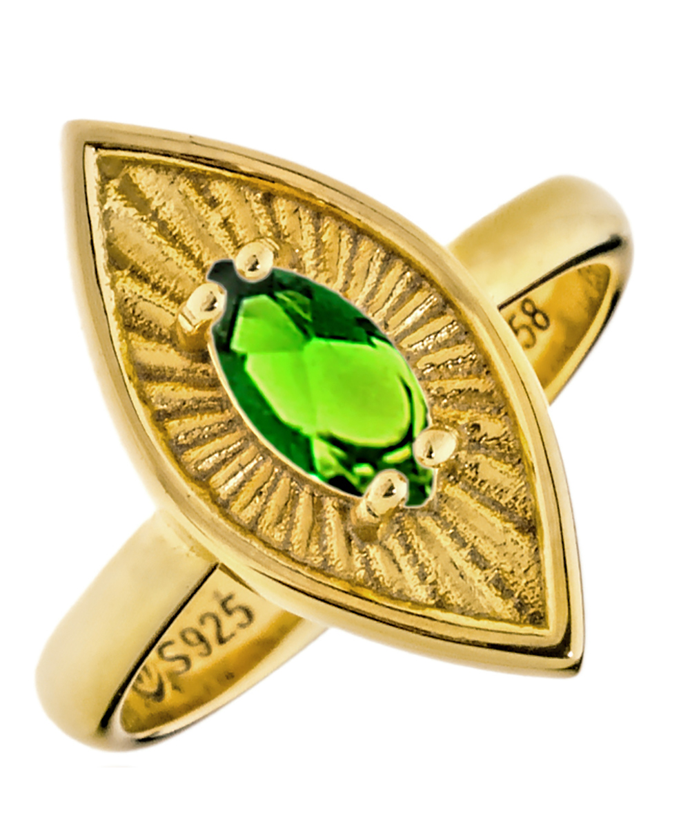 Γυναικείο Δαχτυλίδι Gregio από επιχρυσωμένο Ασήμι 925 με πράσινη πέτρα Ζιργκόν.