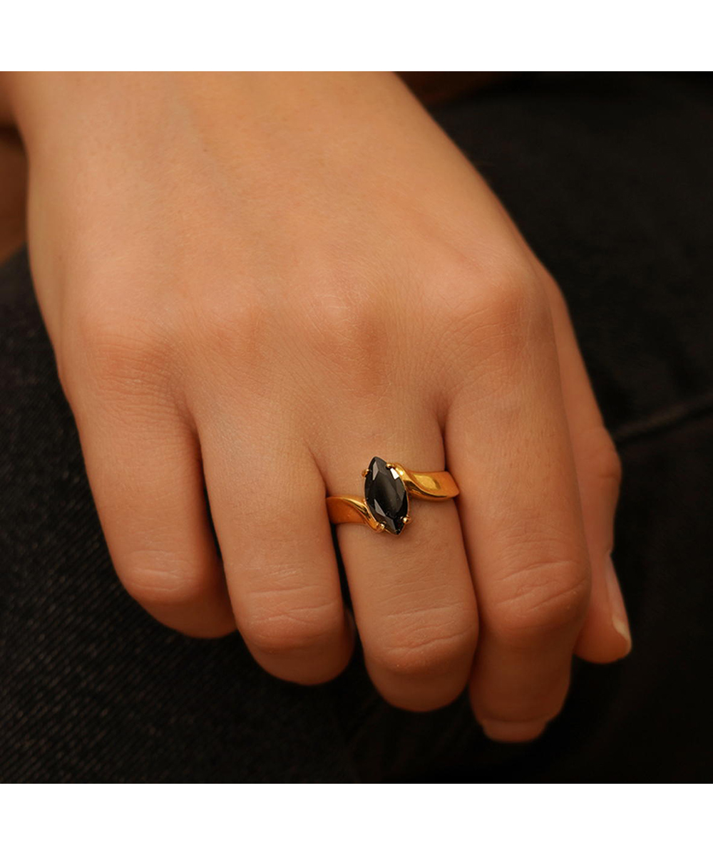 Γυναικείο Δαχτυλίδι Gregio από επιχρυσωμένο Ασήμι 925 με μαύρη πέτρα Ζιργκόν.