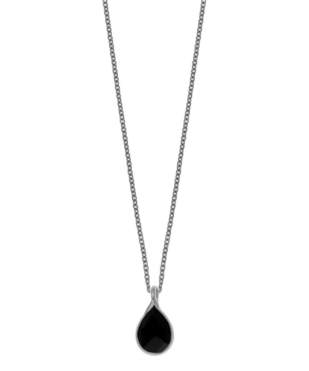 Γυναικείο κολιέ Gregio από επιπλατινωμένο ασήμι 925 με μαύρη πέτρα Ζιργκόν.
