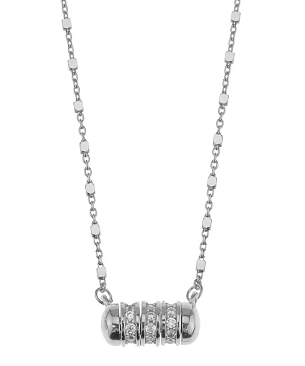 Κομψό ασημένιο κολιέ 925° με κυλινδρικό μοτίφ διακοσμημένο με λαμπερά λευκά ζιργκόν. Ένα minimal και μοντέρνο κόσμημα που φοριέται άνετα καθημερινά και συνδυάζεται εύκολα με κάθε στυλ.