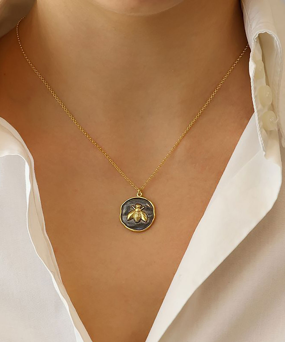 Ξεχωριστό κολιέ από επιχρυσωμένο ασήμι 925° με μοτίφ μέλισσας. Ένα ιδιαίτερο κόσμημα που συμβολίζει τη δύναμη, τη δημιουργικότητα και την αρμονία, ιδανικό για όσους θέλουν να προσθέσουν χαρακτήρα στο στυλ τους.