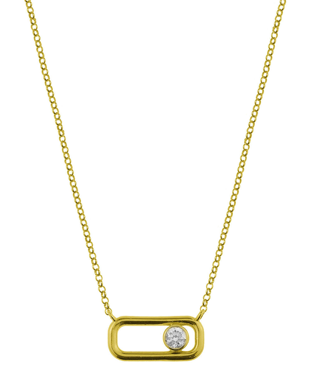 Minimal κολιέ από επιχρυσωμένο ασήμι 925° με ορθογώνιο μοτίφ και λευκό ζιργκόν στο πλάι. Ένα σύγχρονο κόσμημα με καθαρές γραμμές, ιδανικό για καθημερινή χρήση και layering.
