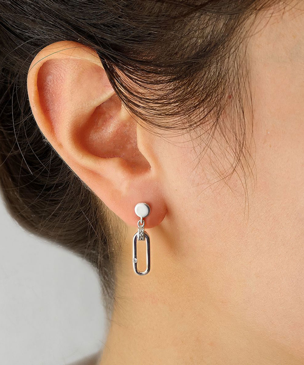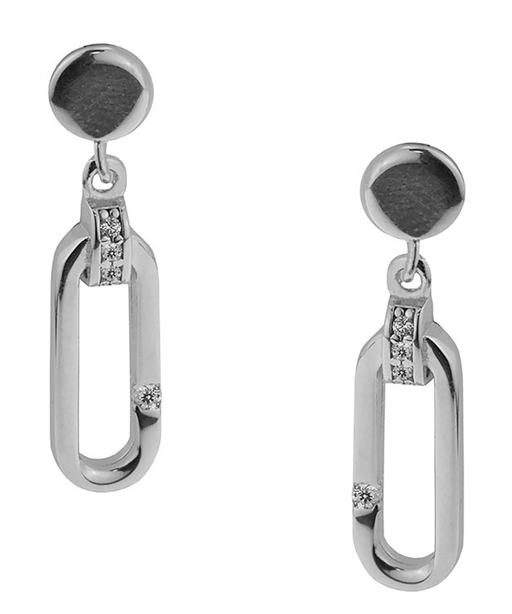 Κομψά ασημένια σκουλαρίκια 925° με κρεμαστό ορθογώνιο σχέδιο και λαμπερά ζιργκόν. Ένα διαχρονικό κόσμημα που αναδεικνύει κάθε outfit, από το πρωί έως το βράδυ.