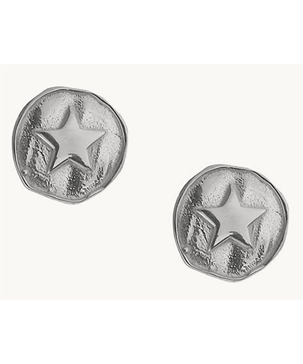 Στρογγυλά σκουλαρίκια από ασήμι 925 με ιδιαίτερη ανάγλυφη υφή και κεντρικό αστέρι. Ένα μοντέρνο σχέδιο που συνδυάζει minimal γραμμές με ξεχωριστή λεπτομέρεια.