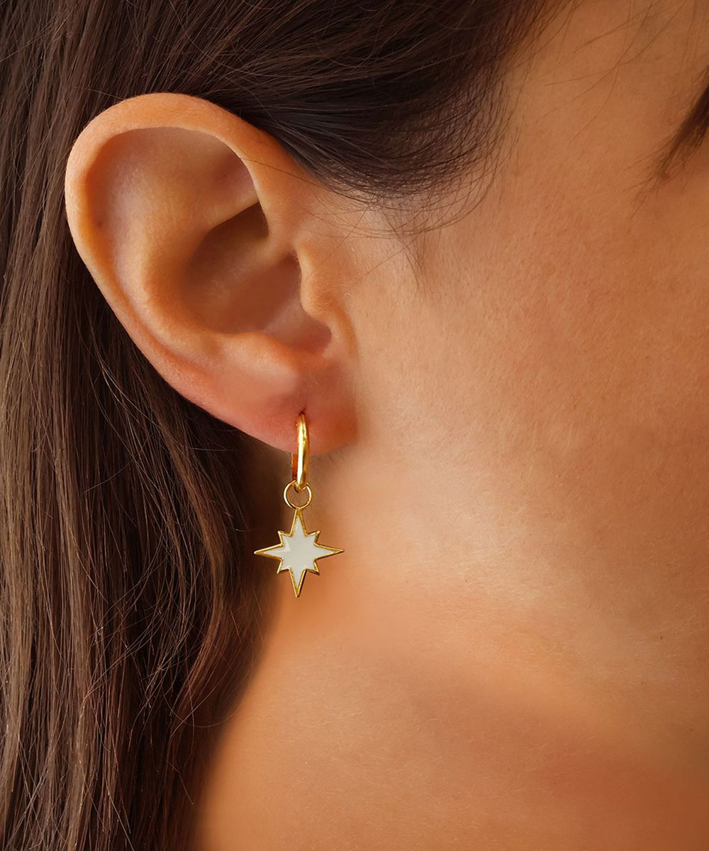 Γυναικεία σκουλαρίκια Gregio από επιχρυσωμένο ασήμι 925 με λευκό φίλντισι.