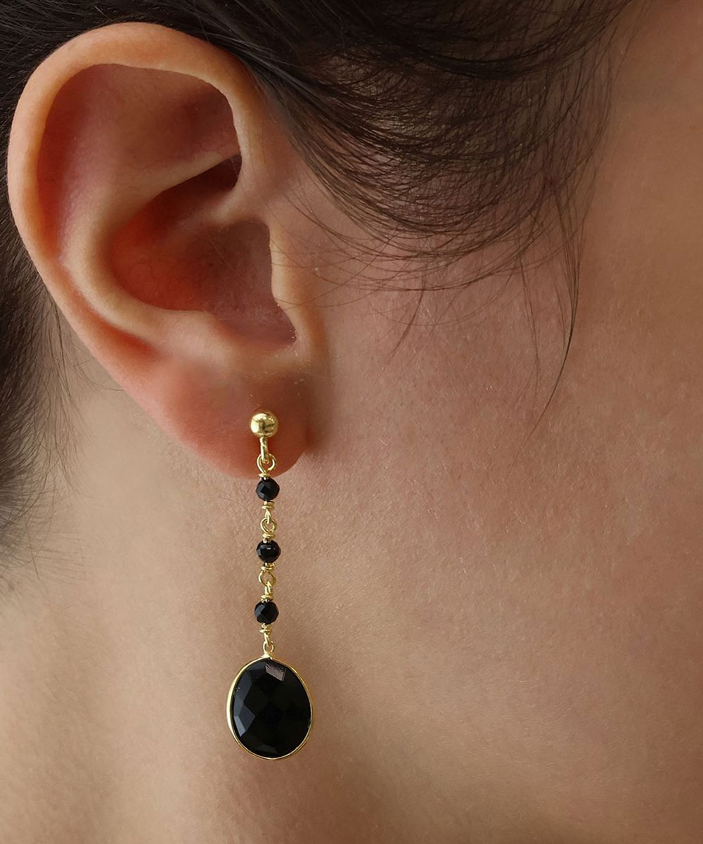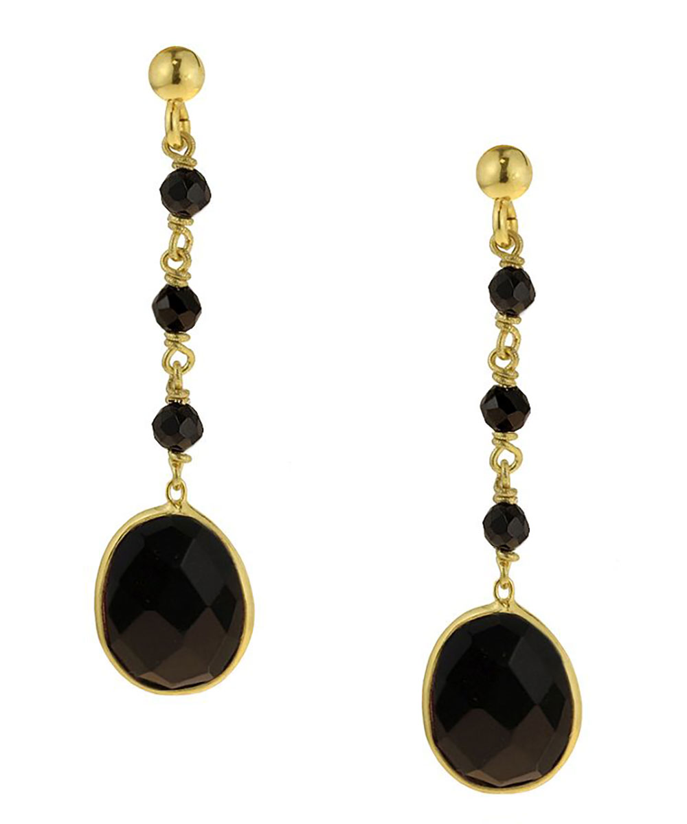 Εντυπωσιακά κρεμαστά σκουλαρίκια από επιχρυσωμένο ασήμι 925° με μαύρες πέτρες και διακοσμητικές λεπτομέρειες. Ιδανική επιλογή για βραδινές εμφανίσεις και elegant σύνολα με χαρακτήρα.