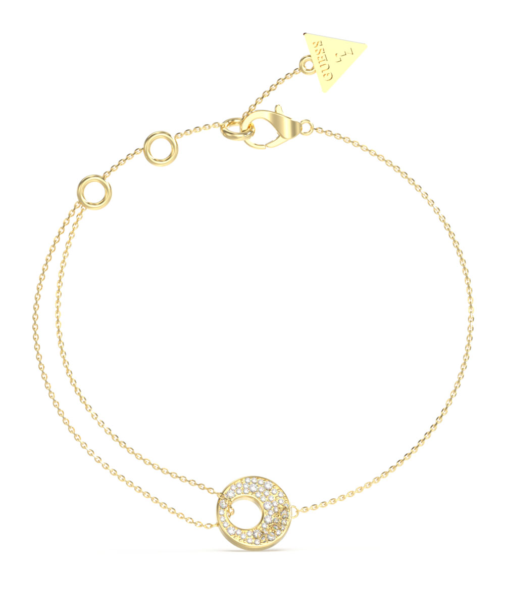 Γυναικείο βραχιόλι Guess από επιχρυσωμένο ανοξείδωτο ατσάλι με ροζ πέτρες Ζιργκόν.