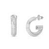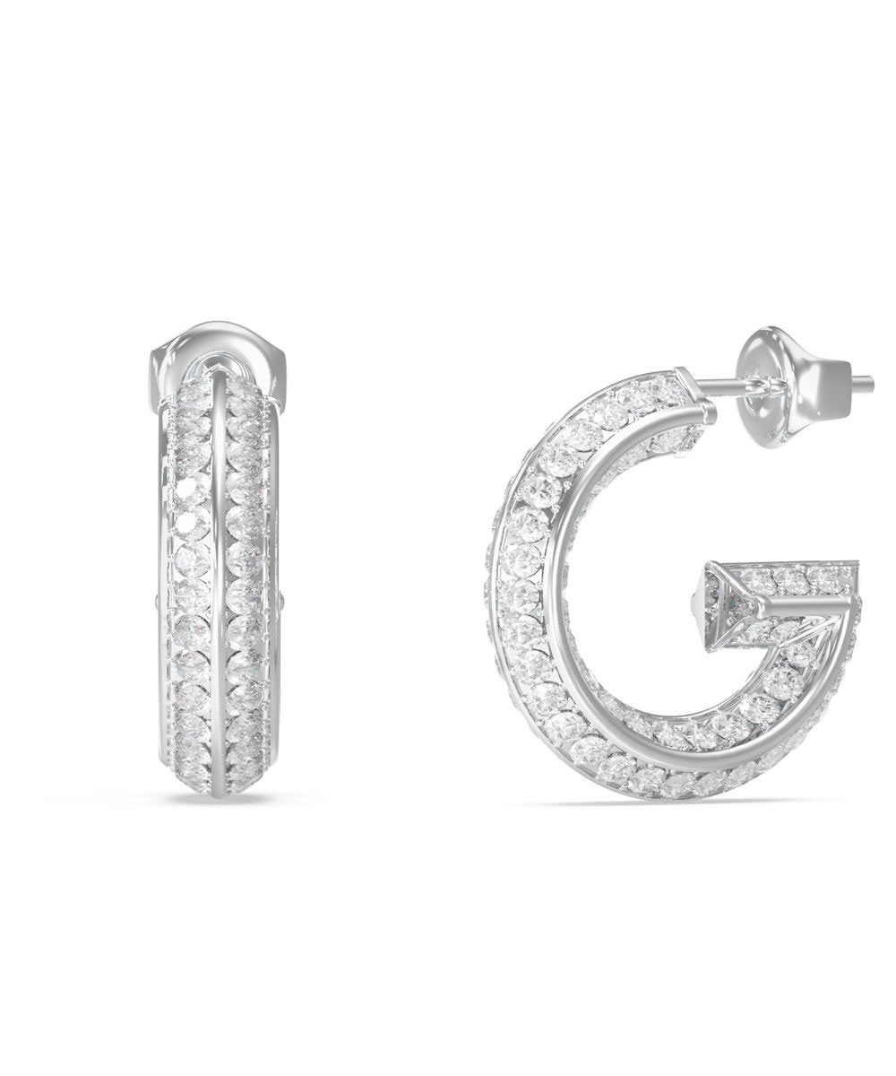 Γυναικεία σκουλαρίκια Guess από ανοξείδωτο ατσάλι με σχέδιο G και με λευκές πέτρες Ζιργκόν.