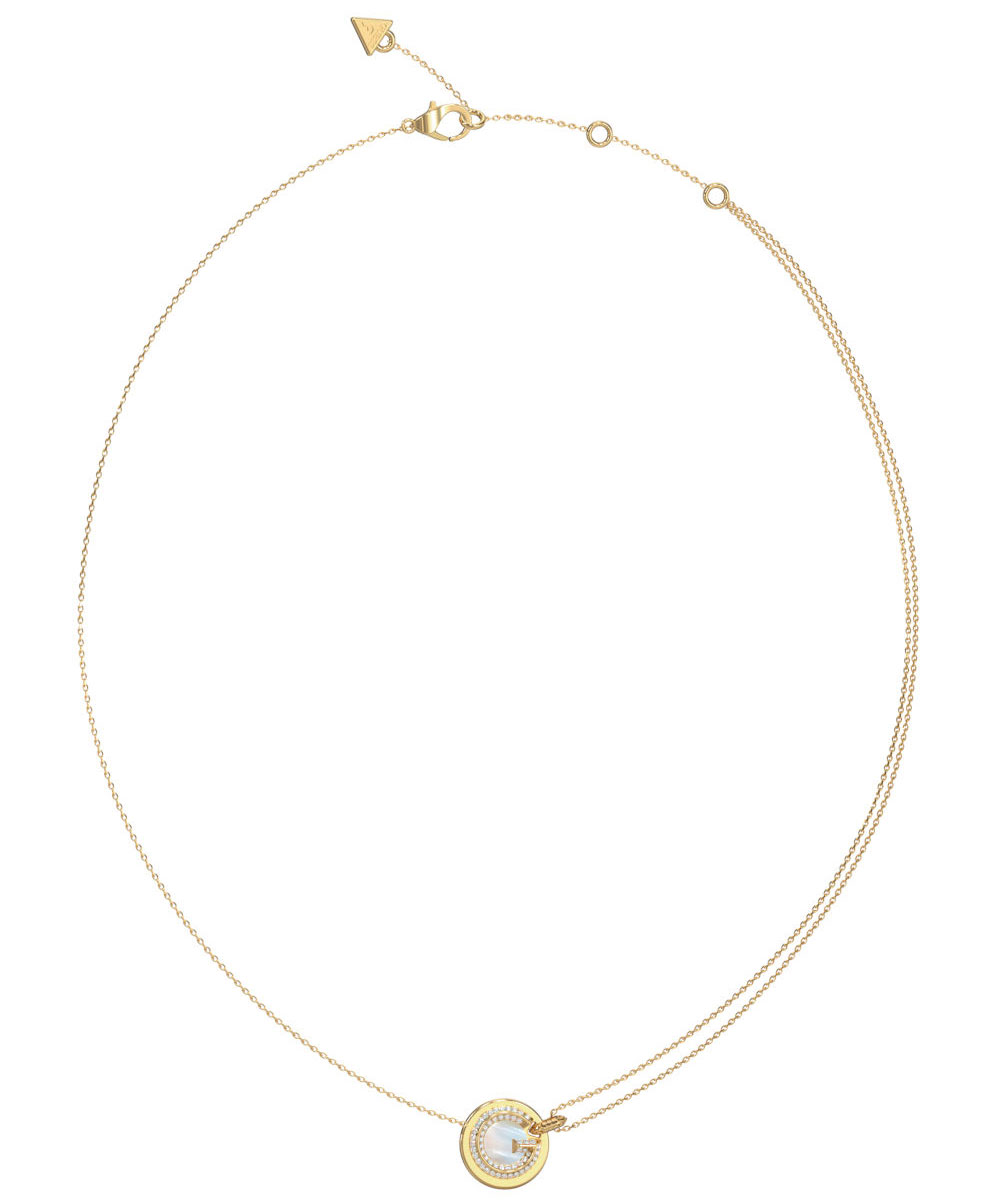 Γυναικείο κολιέ Guess από επιχρυσωμένο ανοξείδωτο ατσάλι με λευκές πέτρες Ζιργκόν.