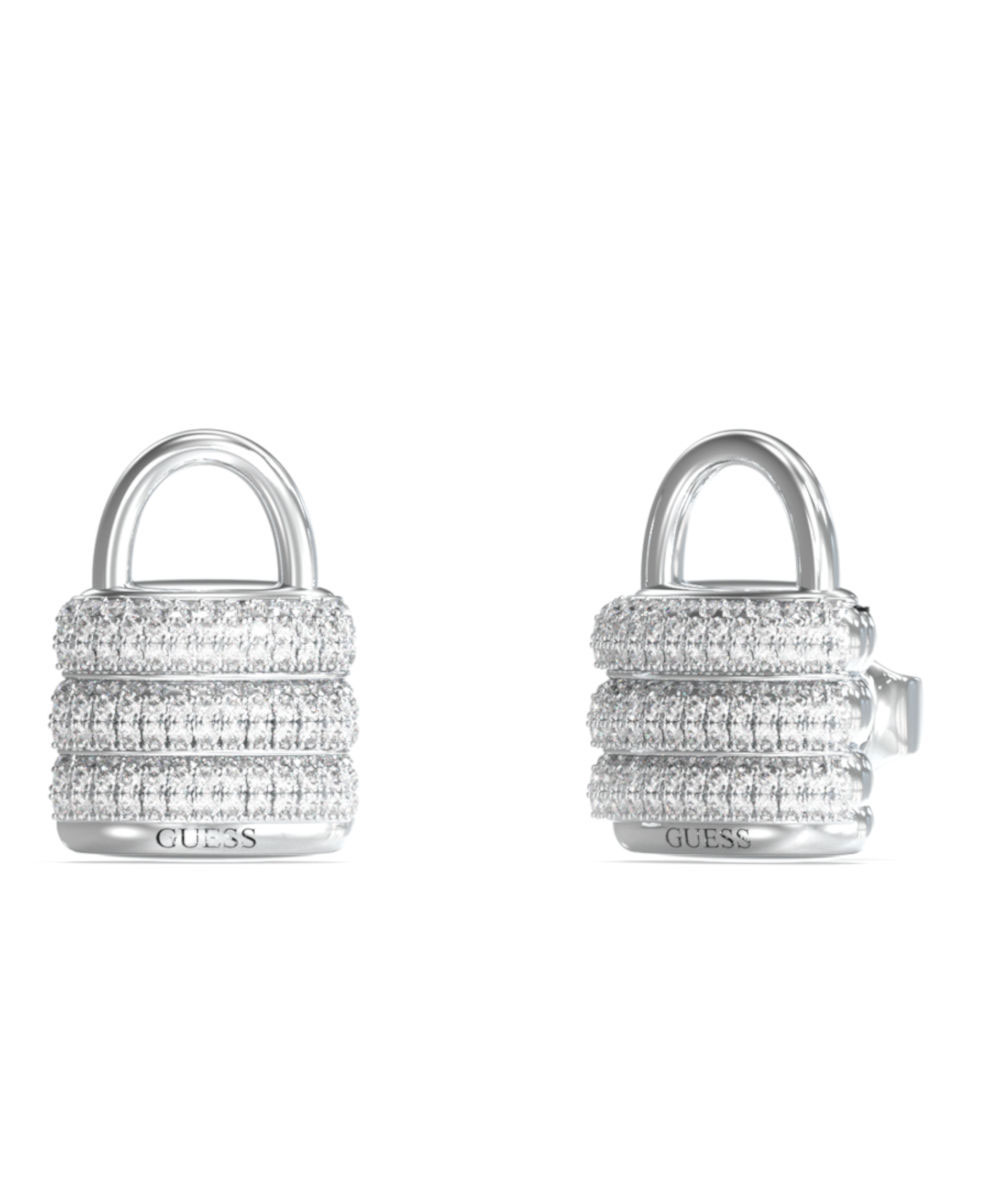 Γυναικεία σκουλαρίκια Guess από ανοξείδωτο ατσάλι με σχέδιο λουκετάκι και με λευκές πέτρες Ζιργκόν.